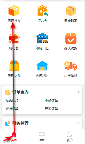 进入【首页】,点击【包裹预报】:
