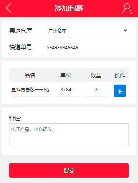 填写【快递单号】、商品信息,点击【提交】: